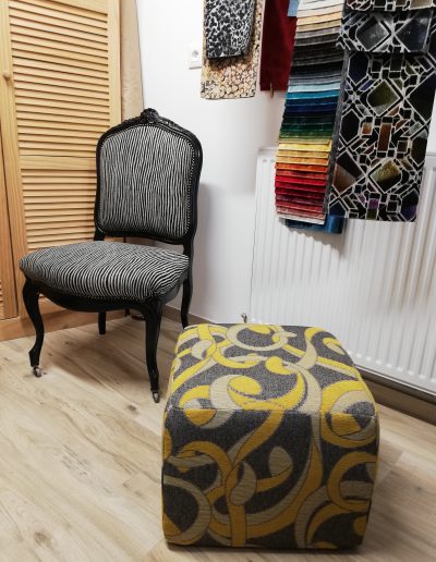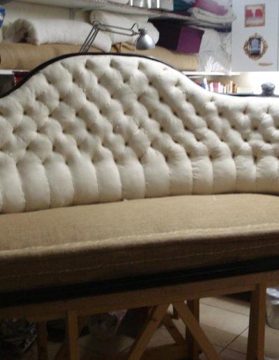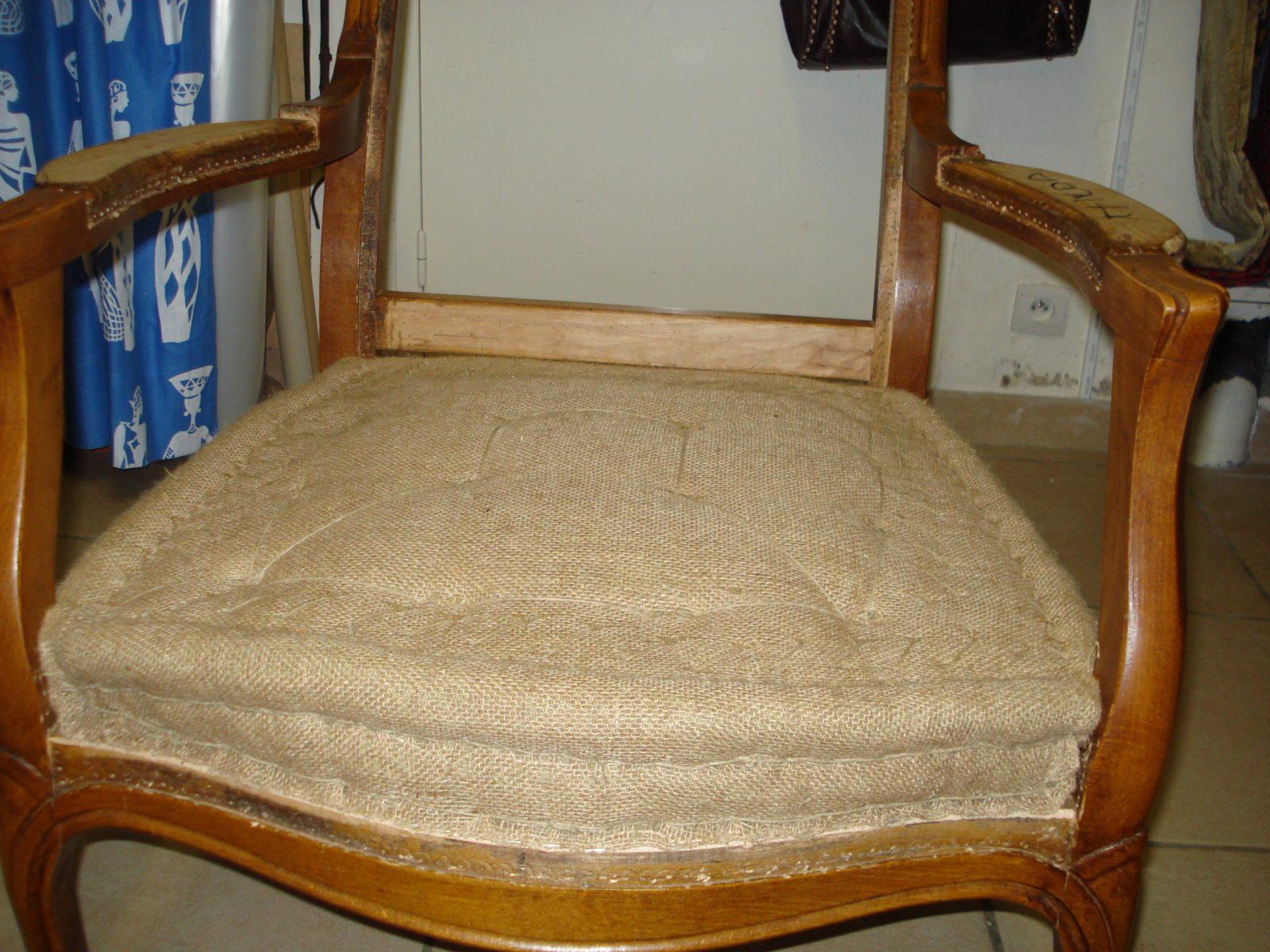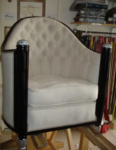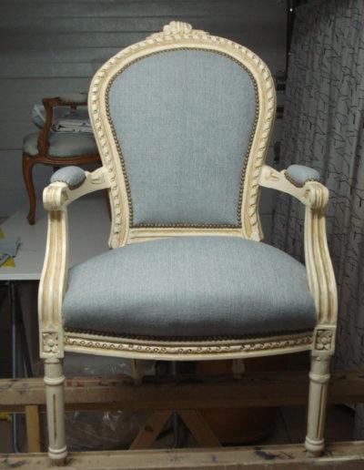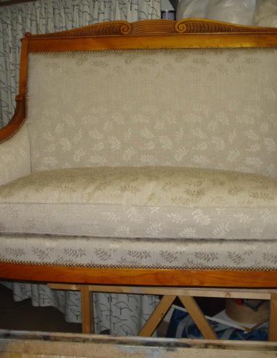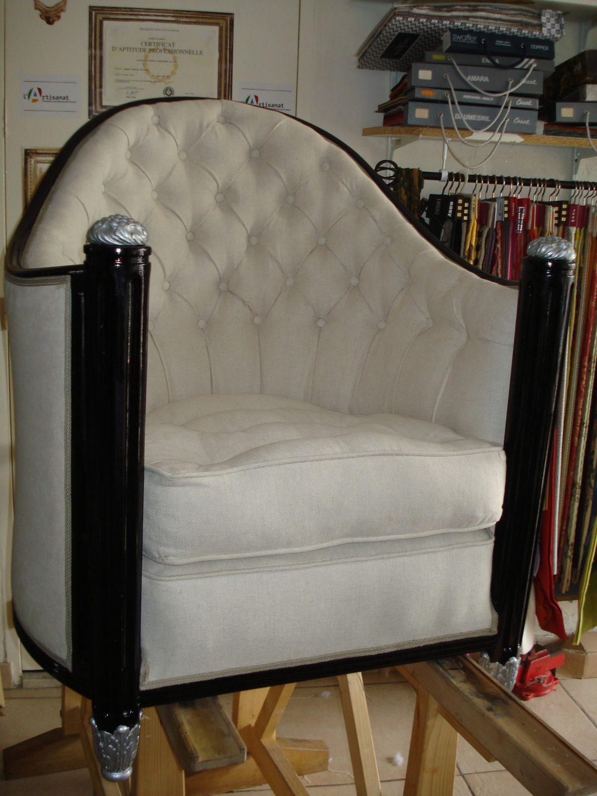 Après avoir soigneusement mis à nu le siège à rénover, le tapissier le regarnit et procède à son habillage en conservant le style du meuble, la décoration existante de la pièce où il sera installé.