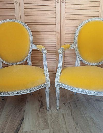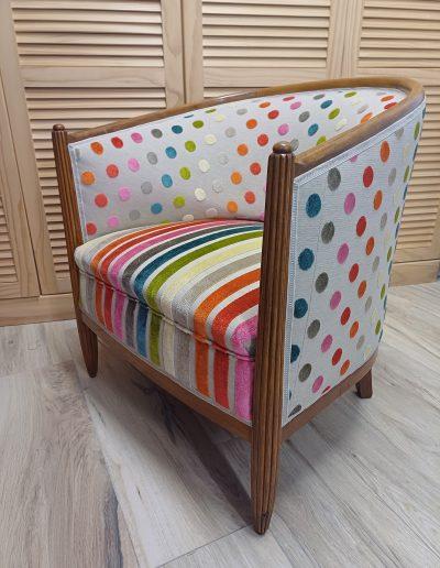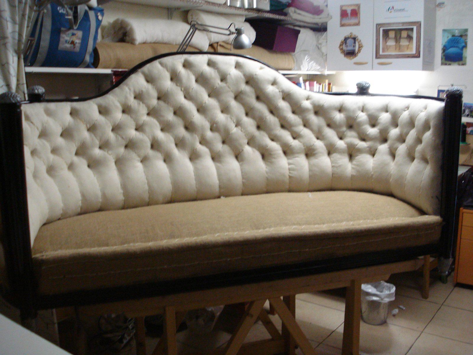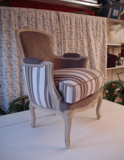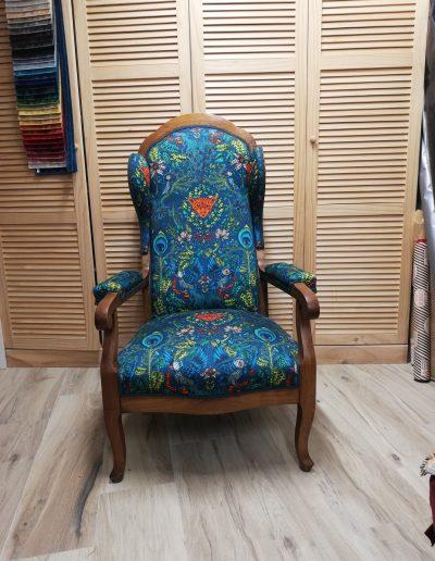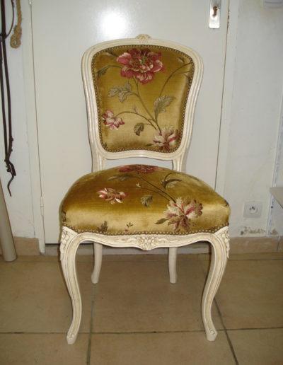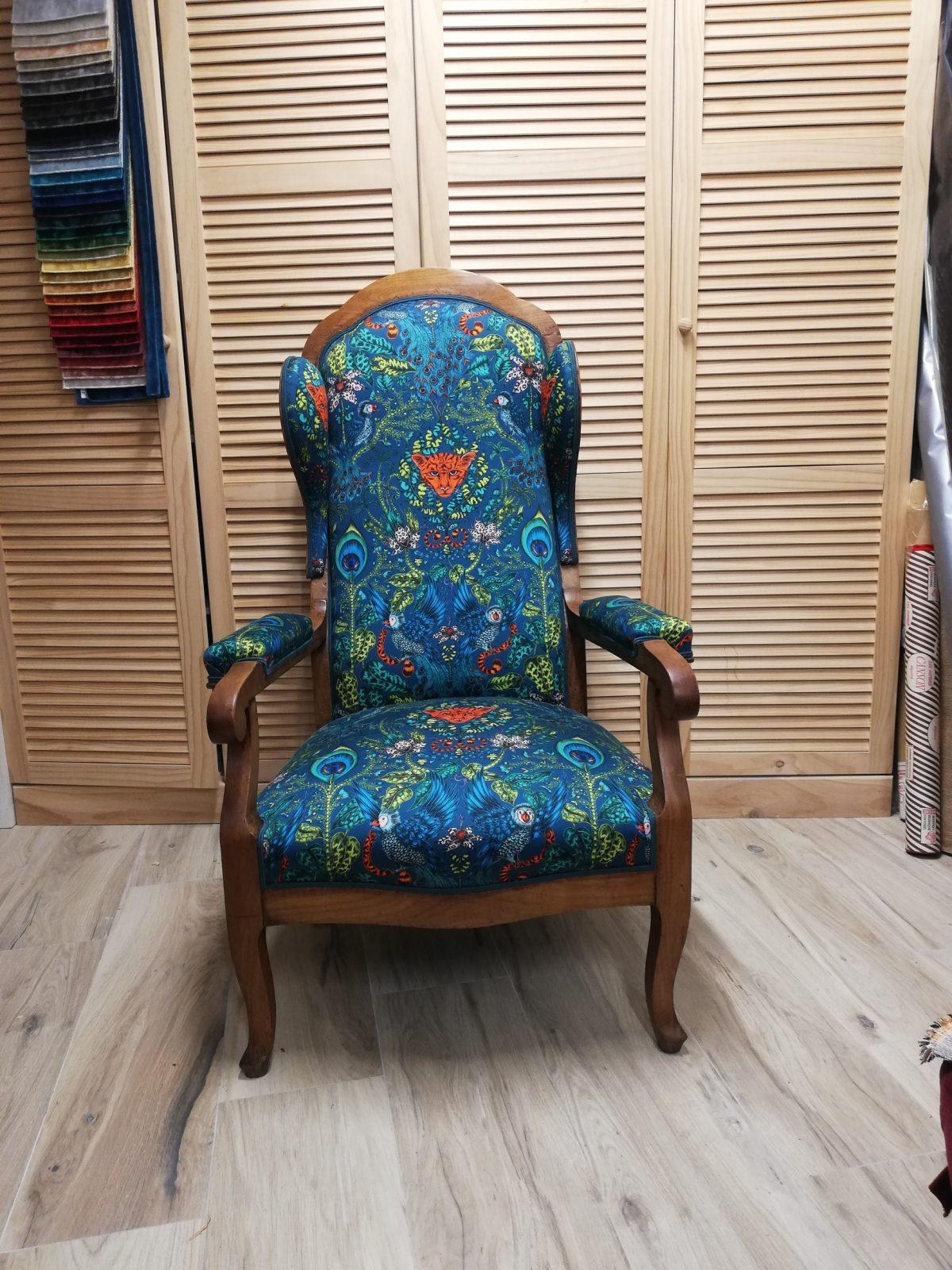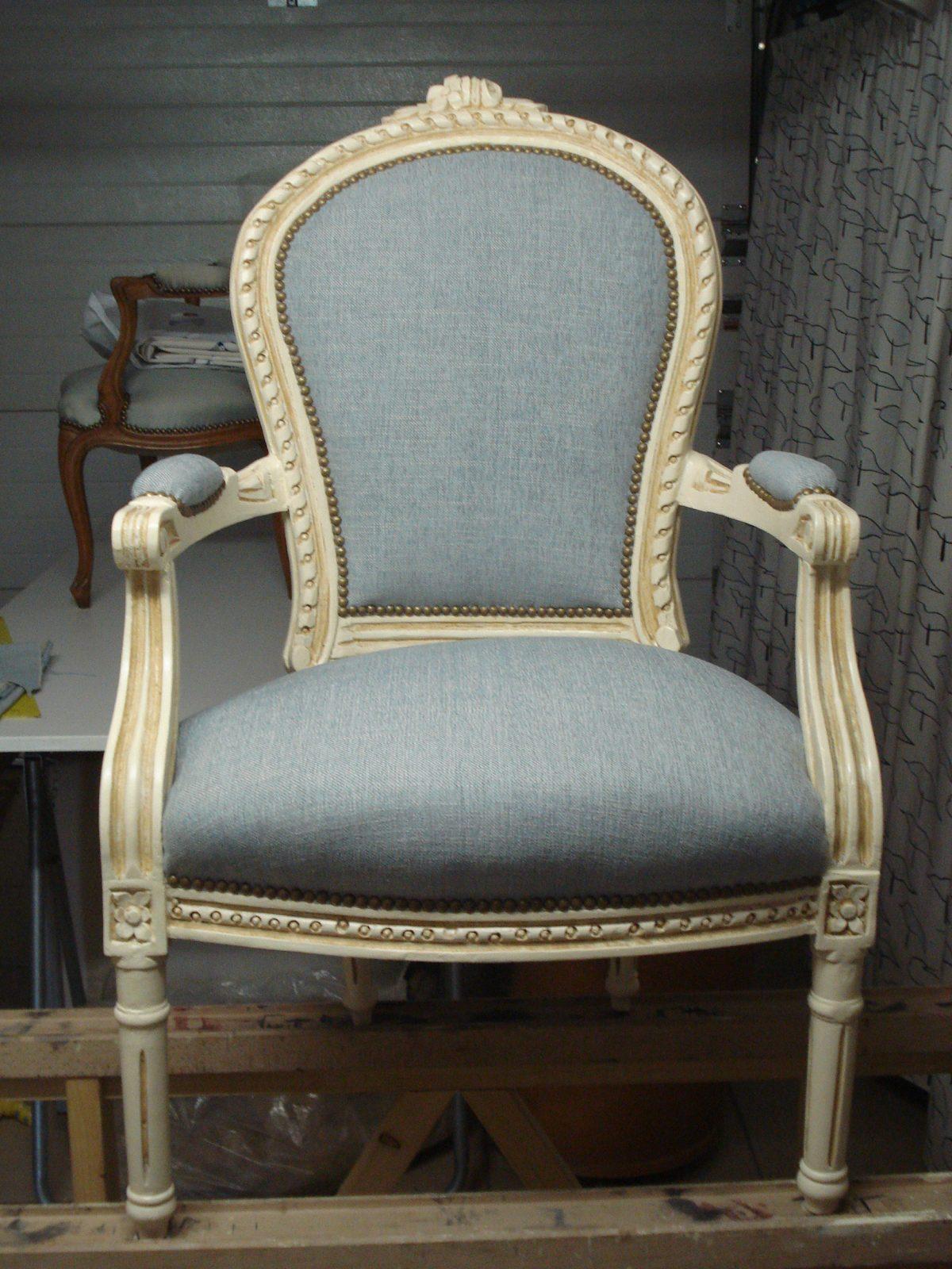Après avoir soigneusement mis à nu le siège à rénover, le tapissier le regarnit et procède à son habillage en conservant le style du meuble, la décoration existante de la pièce où il sera installé.