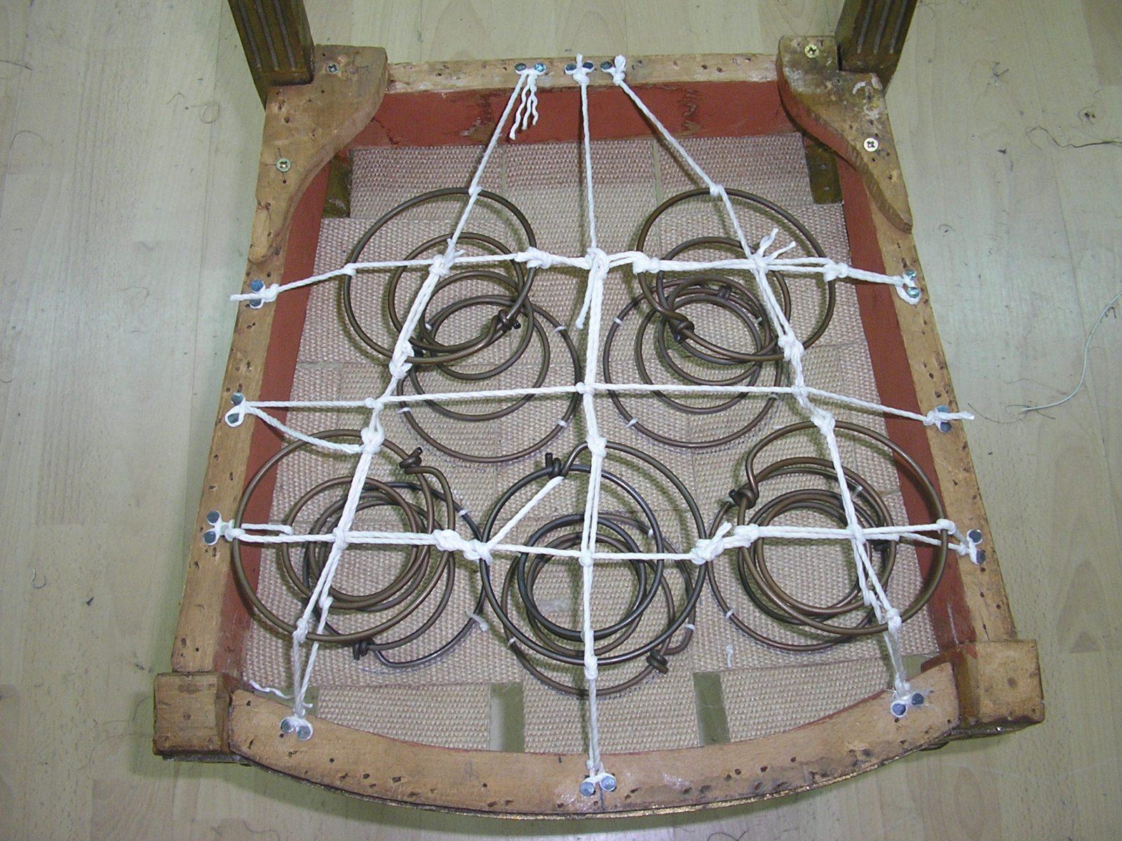 - Un sanglage soutiendra les ressorts, ceux-ci seront guindés par des cordes de maintien et de soutien à bonne hauteur.